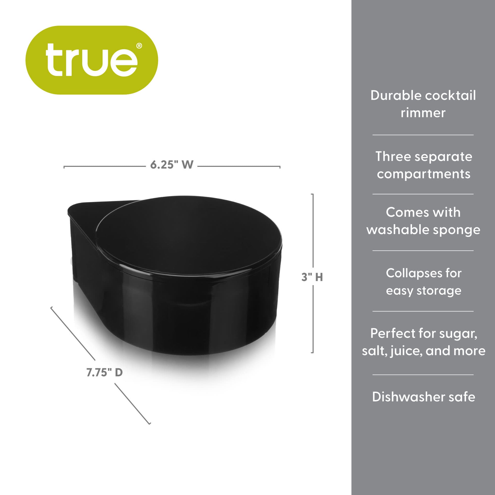 Elevate your cocktail prep with this 3-tiered rimmer from True®, designed to keep garnishing effortless and organized. Featuring dedicated compartments for salt, sugar, and lime juice, it’s perfect for crafting margaritas, daiquiris, and other rimmed cocktails with professional ease.