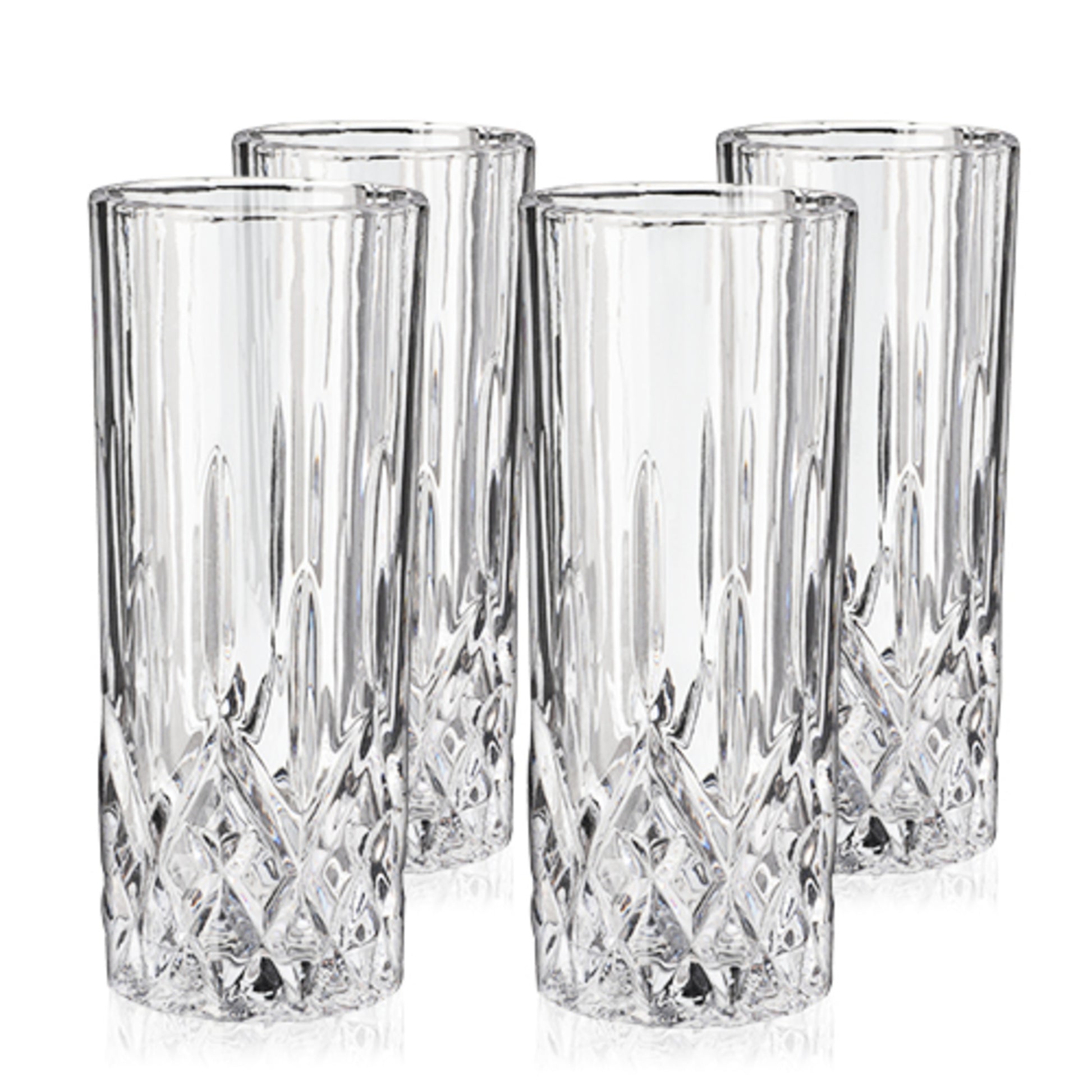 With just the right weight and balance, these faceted crystal highball glasses feel as good in your hand as they look on your bar. Their elegant design and brilliant clarity make every pour — from a gin & tonic to a whiskey highball — feel like an occasion.