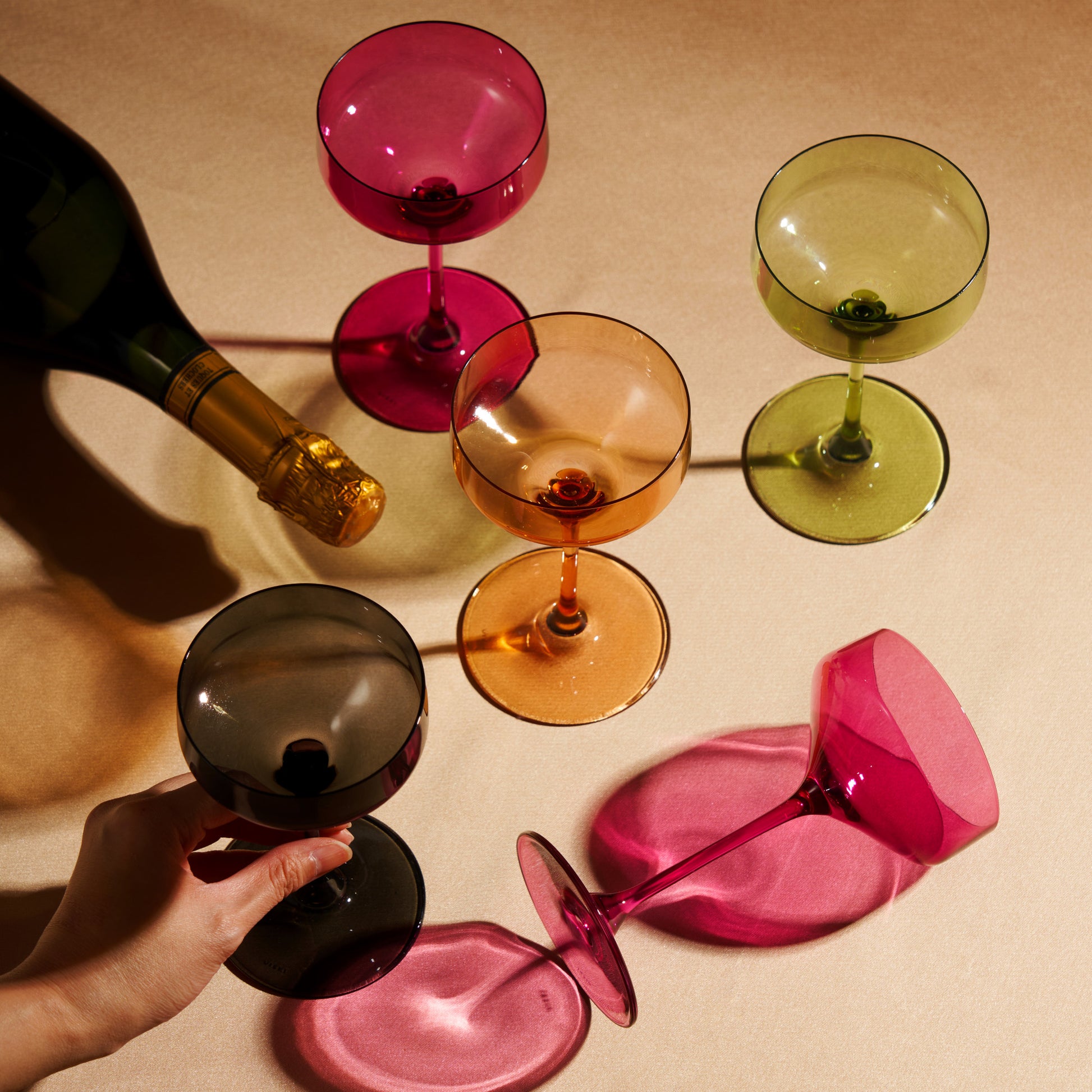 The Reserve Nouveau Crystal Coupes in Smoke from Viski® are crafted from fine European crystal with a rich smoke-gray tint that exudes understated elegance. Perfect for shaken cocktails, champagne, or evening entertaining, these stemmed coupes add a refined edge to any glassware collection.