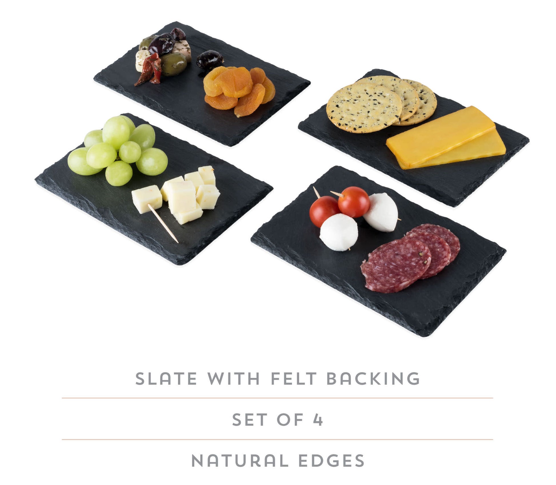 Add a touch of understated elegance to your entertaining with this set of 4 slate tapas plates. Perfect for small servings, appetizers, or hors d'oeuvres, these plates offer a sturdy and stylish platform to display your delicious bites. The food-safe surface enhances the appeal of your treats, making them perfect for cheese, fruit, crackers, meats, and olives. The sleek black slate creates a sophisticated contrast to any dish, elevating your presentation while keeping it simple.